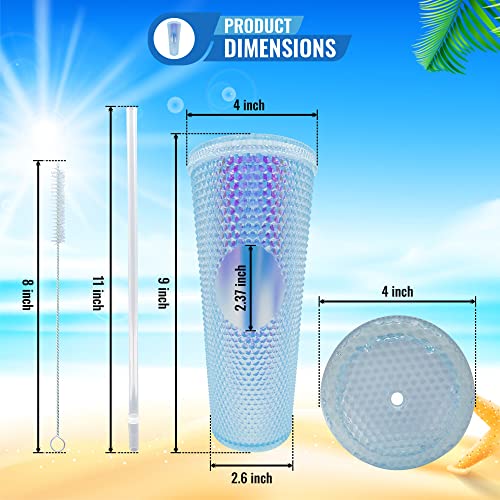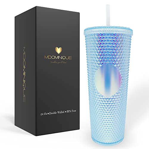 MDOMINIQUE - Double Wall Studded Tumbler with lid and straw Leak-Proof Lid Water Tumbler with Straw Reusable Iced Coffee Cup Personalized Water Tumbler Smoothie Custom cup (24oz, Blue Bling)