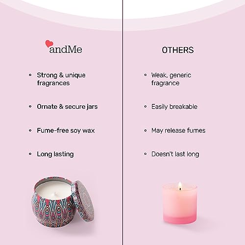 & ME - & ME Andme-Tin Candle Jar with Soy Wax - Mon Paris| Serenity in Every Scent | Eco-Friendly Luxury for Homes | Captivating Aromas | Blissful Fragrances | Scented Candles for Home Décor Gifting