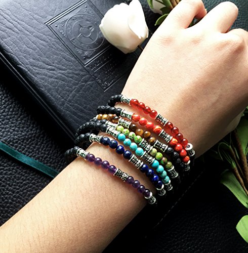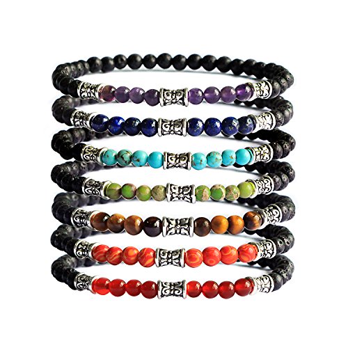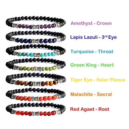 Me&Hz - Me&Hz 7 Chakra Healing Gemstone Bracelet Lava Rock Bracelet Set Women & Men Oil Bead Bracelet Solar System Yogo Meditation Stretch Bracelet, no stone,