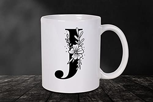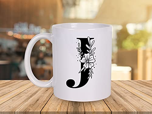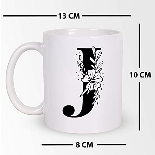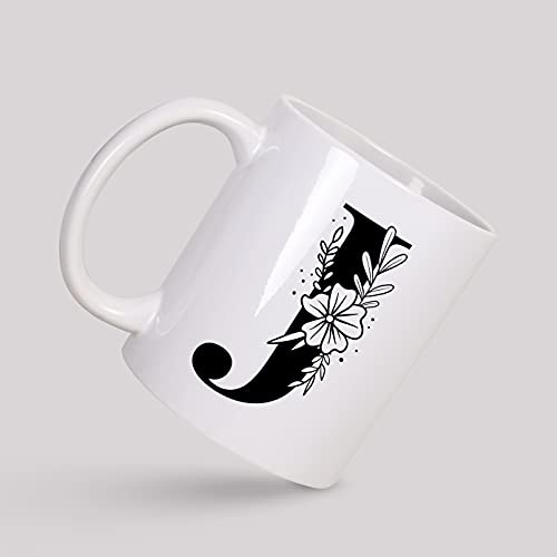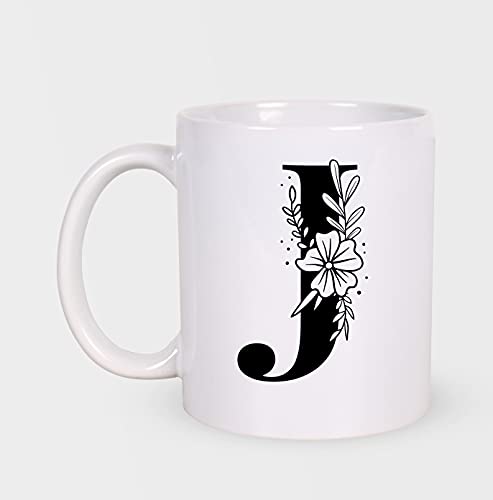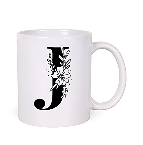 H-Home - مج سيراميك ابيض سعة 330 مل من مي برينت مطبوع بالحروف الابجدية على شكل حرف J افضل هدية للتهنئة بعيد الميلاد للعائلة والاصدقاء والزملاء للمشروبات مثل القهوة والحليب والشاي واللبن MP-AZ-110