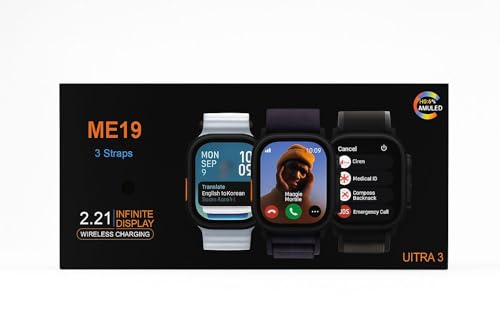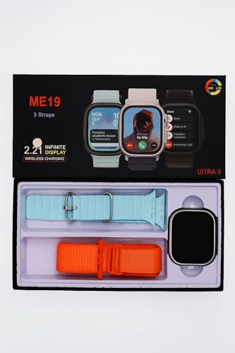 Generic - ME19 Ultra 3 Smart Watch 2.21" AMOLED Screen - Wireless Charging - with 3 Straps (Milky + Orange+Extra)