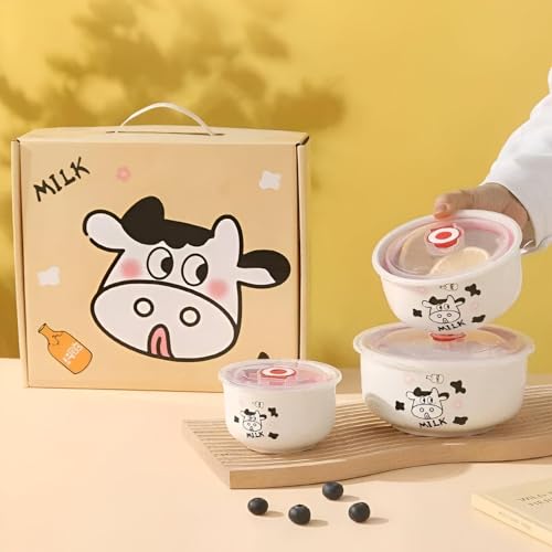Generic - Meal Prep - 3 Piece Porcelain Refrigerator Bowls with Suction Lid, Ideal for Healthy Storage and Balanced Diet Portions, 600ml 500ml 400ml