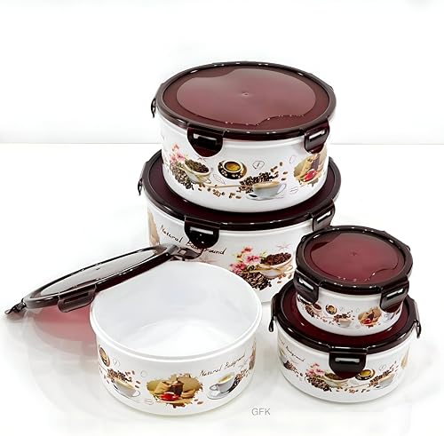 - حافظ على طعامك طازجًا ونظيفًا مع مجموعة علب الثلاجة المستديرة 5 في 1، المصممة كحل مثالي لتنظيم وتخزين وجباتك ومكوناتك اليومية بأمان بطريقة منظمة.