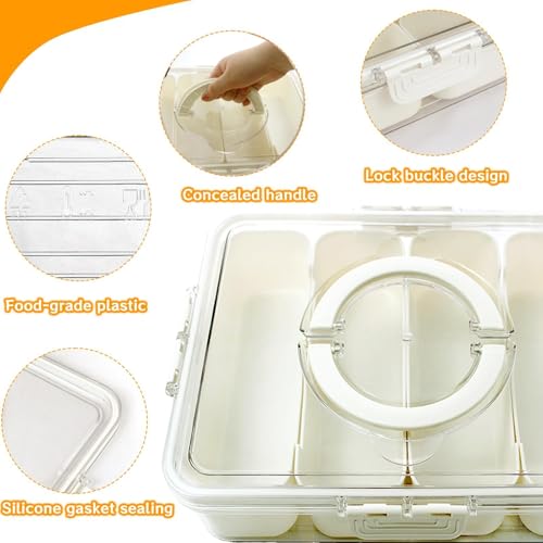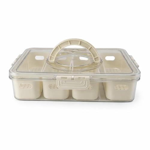 - Features a transparent, partitioned design with 8 separate storage compartments, allowing for organized and visible storage of various food types like nuts, fruits, and biscuits, making contents easily accessible and neatly arranged.