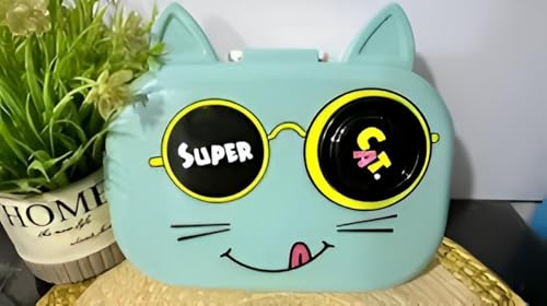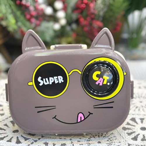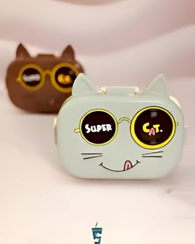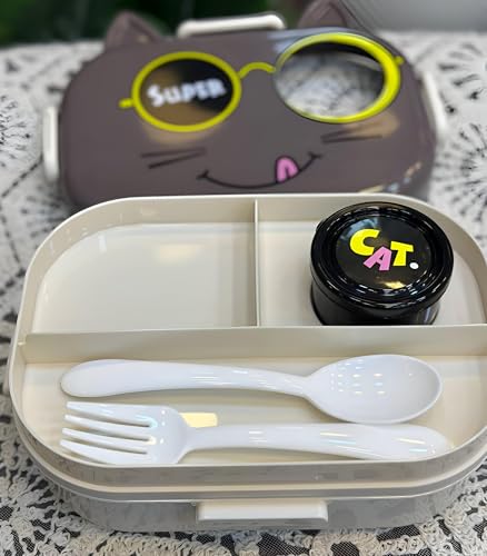 Generic - Meal Storage - Stylish Two-Tier Cat-shaped Lunch Container Made from Safe, High-Quality Material Including Spoon, Fork, Small Yogurt Container, and Fruit Section for Efficient Food Organization