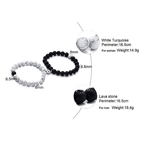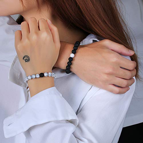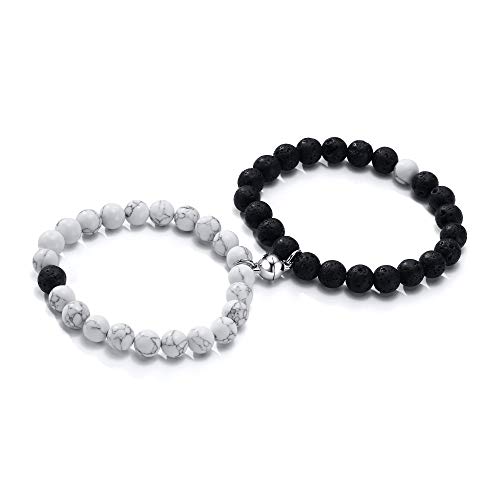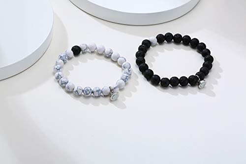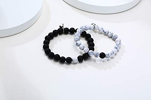 MEALGUET - MEALGUET Magnetic Couple Bracelets White Howlite & Black Lava Rock Matching Beaded Bracelets Distance Relationship Mutual Attraction Bracelet Gift for Lover