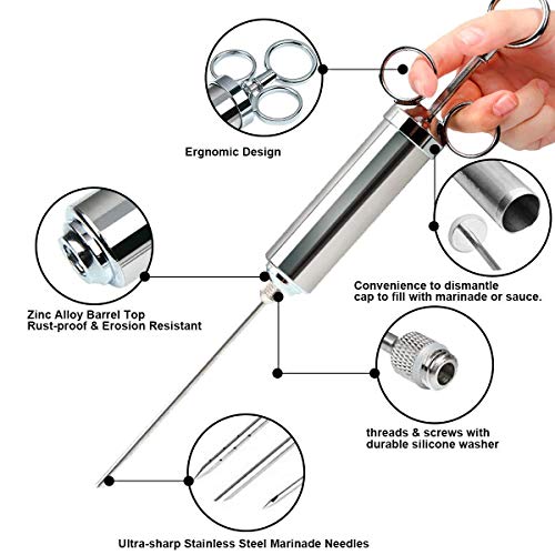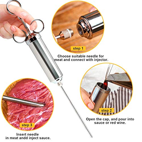 Beauenty - Meat Injector Stainless Steel Meat Marinade Syringe Kit Professional Marinade Seasoning Cooking Syringe Suitable for Grilling, Baking and Cooking