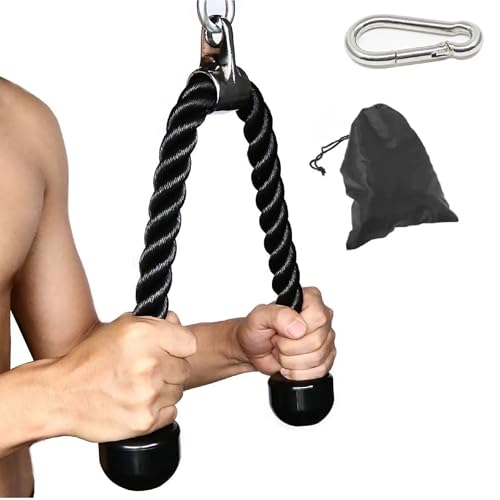- مثالية للاستخدام القاسي: نعلم جميعًا أن ملحقات التمرين عالية الجودة مهمة للغاية. حبل ثلاثي الرؤوس هذا مصنوع من ألياف النايلون مما يوفر قوة أكبر ومتانة طويلة الأمد. مقابض مطاطية غير قابلة للانزلاق ومقاومة لزيادة الثبات والدعم عند ممارسة التمارين