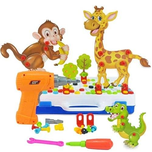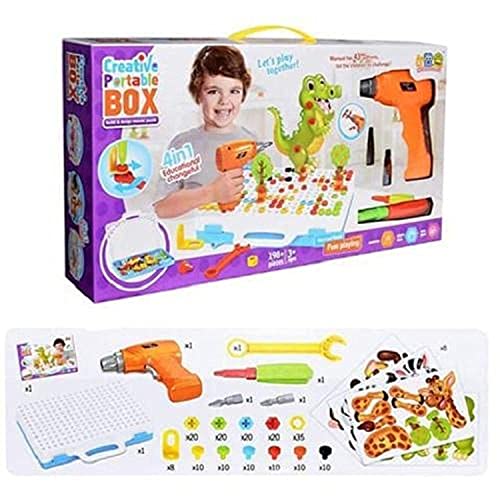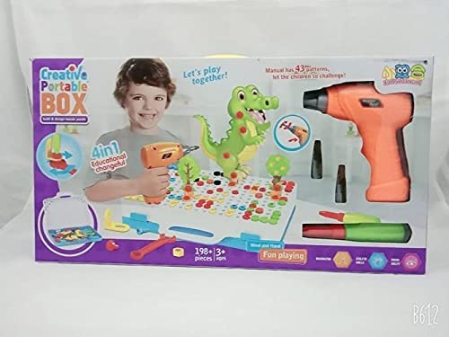Other - لعبة صندوق الميكانو 4فى1 مع الشنيور بالبطارية وادوات التركيب 198 قطعة ثلاثية الابعاد، بلاستيك، متعدد الألوان