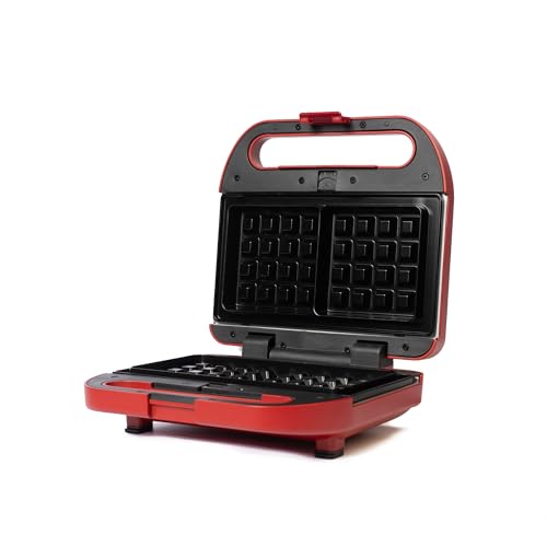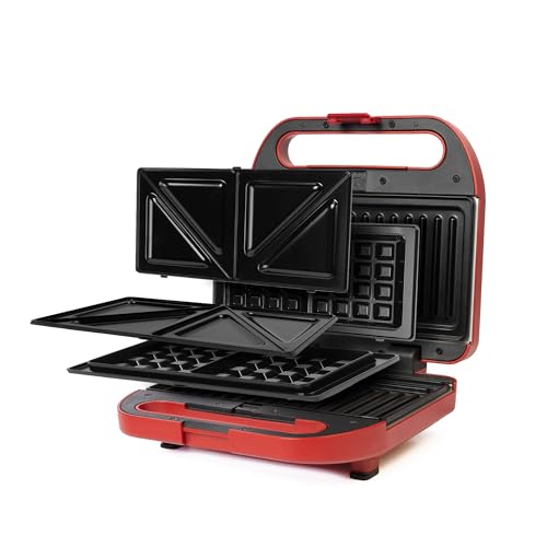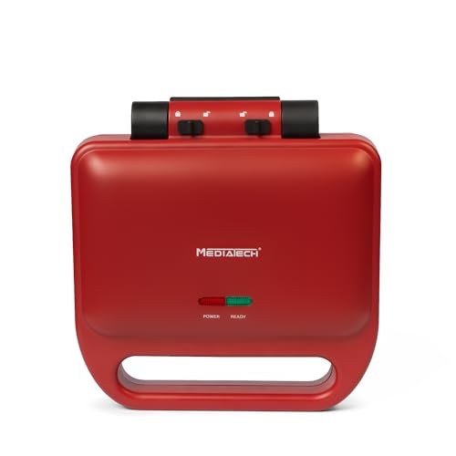 MediaTech - MediaTech 3 in1 Sandwitch Maker,750 Watt, Double-Sided Heating, Non-Stick Coating, Portable, Interchangeable Sandwich Maker, Grill Maker and Waffle Maker, MT-207/ Red (2 Years Warranty)