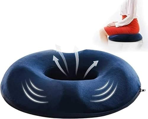 - تصميم مبتكر: شكل دائري مع تجويف في المنتصف يوزع الضغط بشكل متساوٍ ويخفف من آلام الجلوس