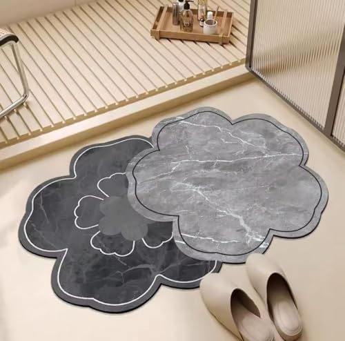Generic - دواسة أرضية بنمط البحر المتوسط - ممتصة للماء وسريعة الجفاف ومضادة للانزلاق من جلد نابا بتصميم منحني أنيق - 60 × 40 سم، لون رمادي (Shape 3)