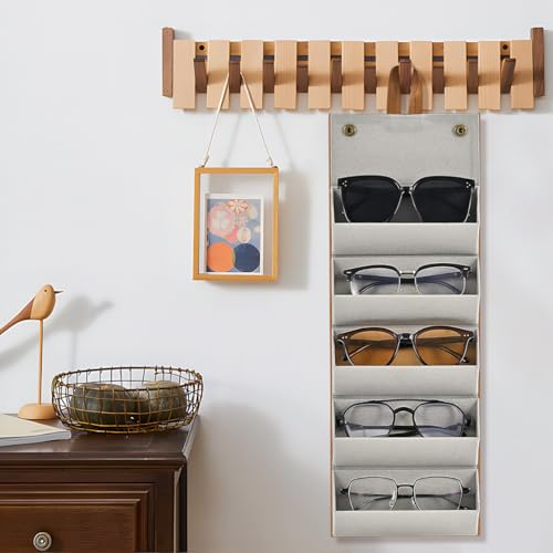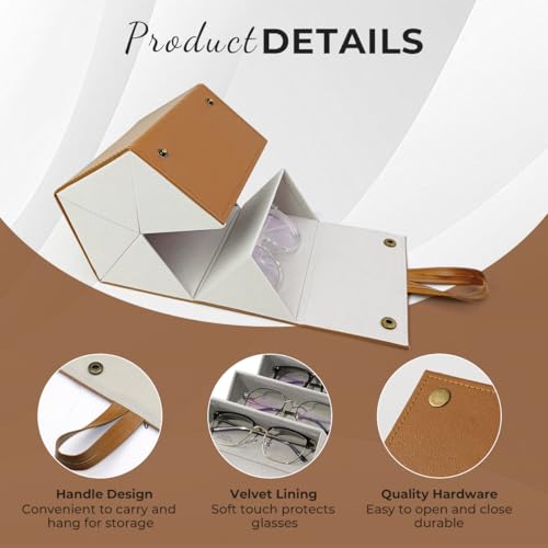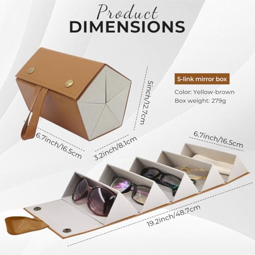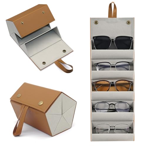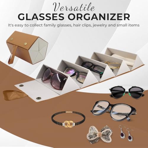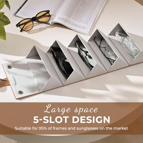 MedMad - 5 Slots Sunglasses Organizer,Multi Sunglasses Storage Case Travel, PU Leather Foldable Glasses Storage Case, Hanging Eyewear Holder Organizer for Women Men