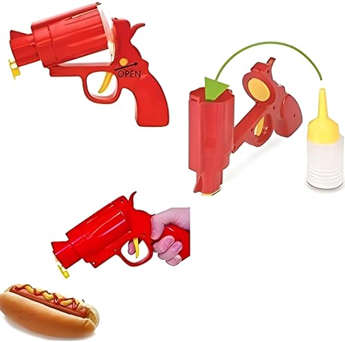 - Introducing the innovative ketchup gun – a unique and fun dispenser that allows you to easily and precisely dispense ketchup, mustard, barbecue sauce, and other condiments. Its user-friendly design makes it perfect for enhancing your dining experience, whether you're at a backyard barbecue, a birthday party, or simply enjoying a family meal. Kids and adults alike will love using this playful tool to add their favorite sauces to burgers, fries, hot dogs, and more, making every meal a delightful e