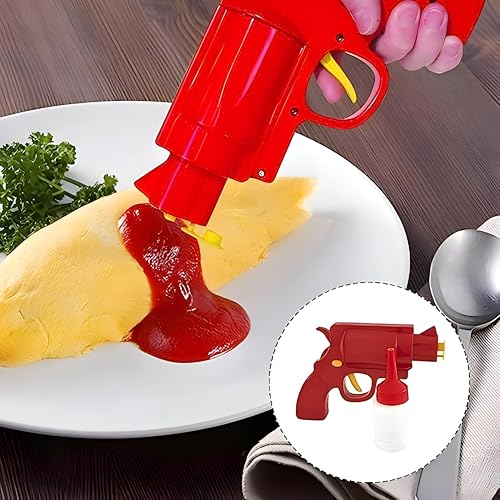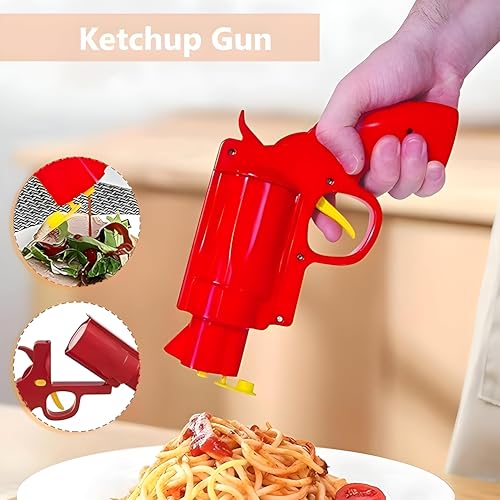 - Upgrade your condiment experience with the ketchup gun and say goodbye to boring, old ketchup bottles! This fun and functional utensil not only adds excitement to meal times but also encourages creativity in how you serve and enjoy your favorite sauces. Perfect for all occasions, from casual family dinners to festive parties, the ketchup gun is bound to be a hit with everyone, adding a playful touch to your culinary adventures.