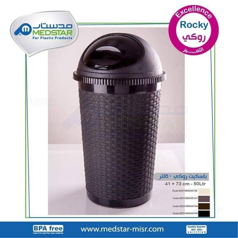 Medstar - سلة مهملات روكي 50 لتر بني من ميدستار بلاستيك يُفتح من أعلى