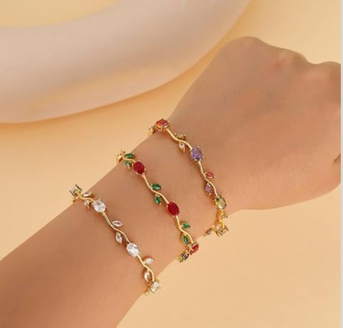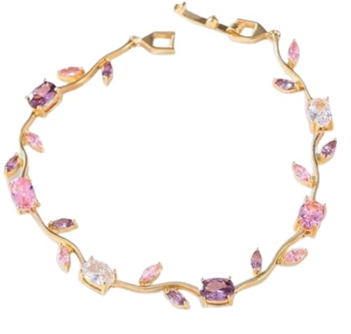 Generic - Medusa Store Luxury Gold Tulip Bracelet with Crystals, Wave Design with Tulip Rose Stones