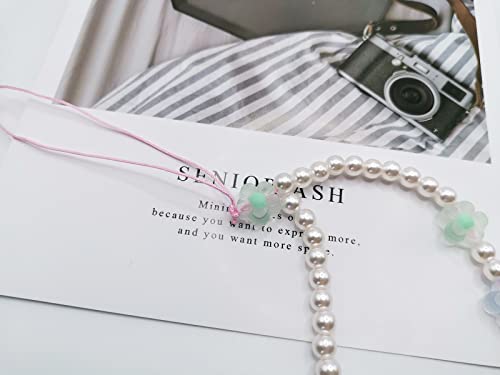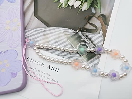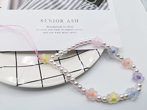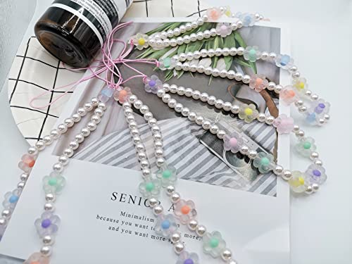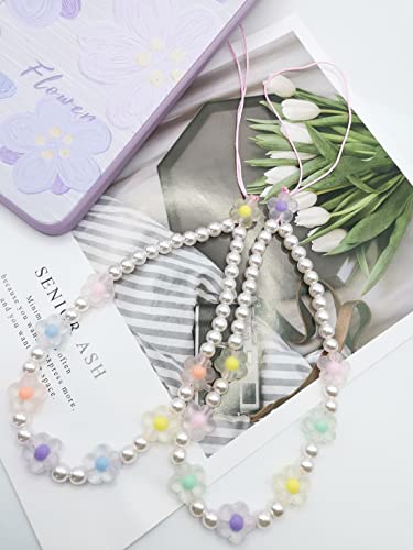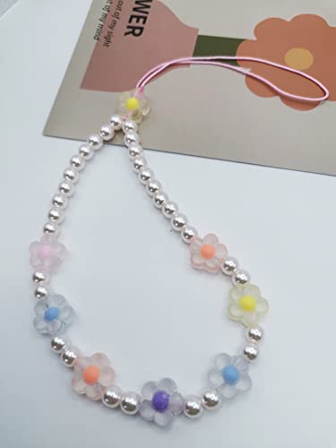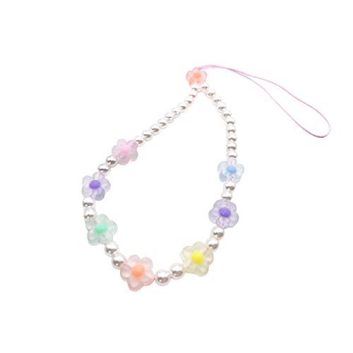 Meefisher - Meefisher Beaded Phone Charm Lanyard Wrist Strap Cute Flower Charms Y2K Anti-Lost Chain Accessories Sweet Gifts for Women Girls, Acrylic Resin Nylon, No Gemstone