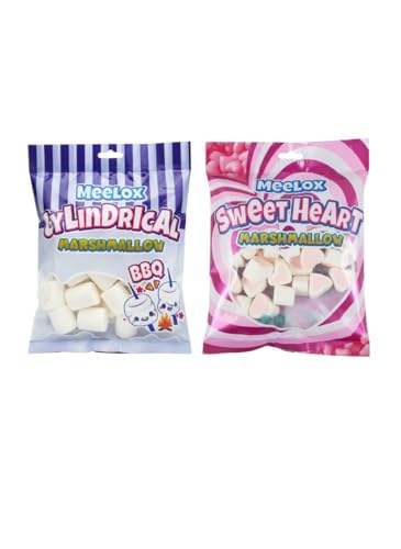Generic - Meelox Marshmallow Candy, Variety of Flavors, Cylindrical and Sweet Heart, 2 Sachets x 150g