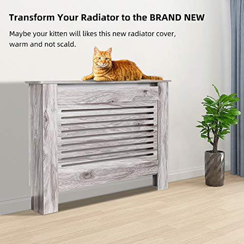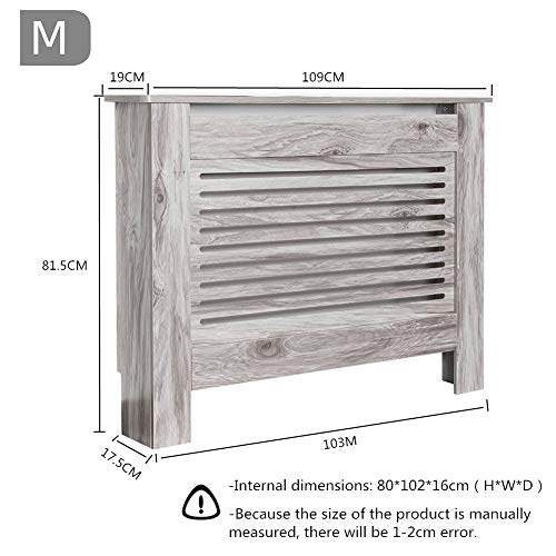 - [Humanized Design] - The size of the radiator cover is 81.5(H)*109(W)*19 (D)cm. The internal dimensions of the product are 80(H)*100(W)*16 (D)cm. The bottom of the product has room for skirting on the wall, the high of the baseboard space is 14.5cm. It is suitable for most families. The corners of the table are rounded and smooth to prevent children from being injured.