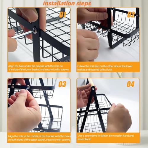 - Two tier basket design - Upper basket size 21x18cm, lower basket size 27x18cm, 2 tier fruit basket provides more storage space for storing lots of fruits, vegetables, spices or bread etc.