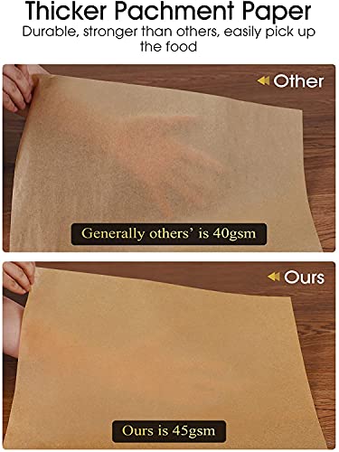 - Natural Material:Made of natural wood pulp, fluorescent free, waterproof, greaseproof and food-grade.The baking paper is safe for oven and microwave, can withstand temperatures up to 450℉(232℃), perfect for grilling and baking.