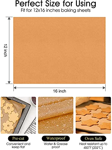 - Pre-cut Design:12 x 16 inch parchment paper, fit for the half sheet pan. Easier to use than rolled parchment paper, no more tearing off a curly roll of parchment paper. Easy to use and clean, just simply let it lay flats onto the pan and throw away after use. Also can cut them with scissors for smaller jobs.