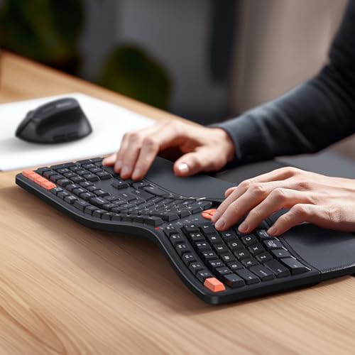 MEETION - MEETION Ergonomic Keyboard and Mouse Wireless Combo, 2.4G/Bluetooth Wireless Split Keyboard with Palm Rest, 4 DPI Adjustable Wireless Mouse, Full Size Rechargeable Keyboard Mouse, Black