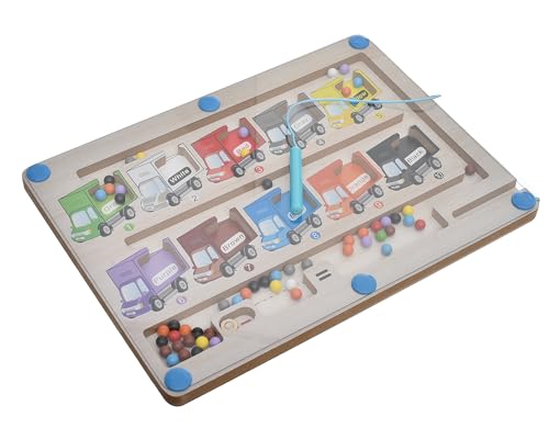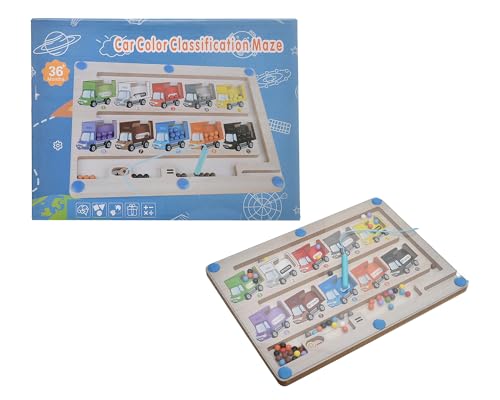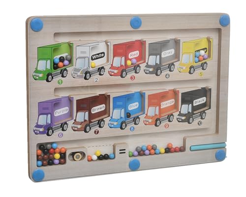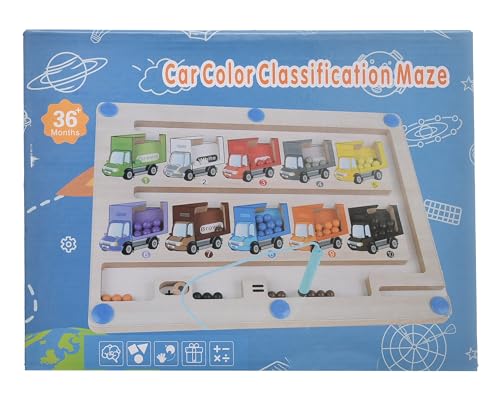 - Magnetic pen navigates beads in a car-themed color classification maze.