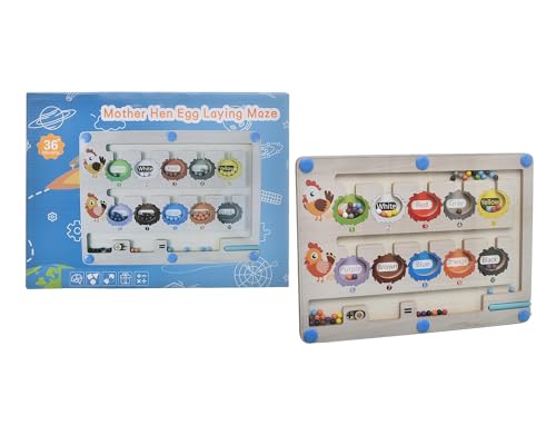 Megahertz - Megahertz Wooden Board Mother Hen Egg Laying Maze with Magnetic Pen for Kids +3 - Multi Colour