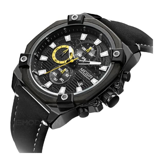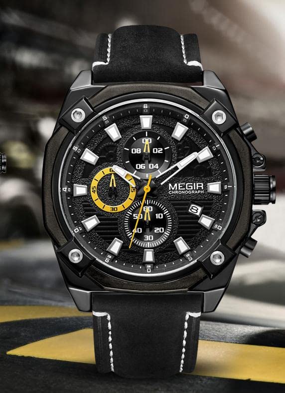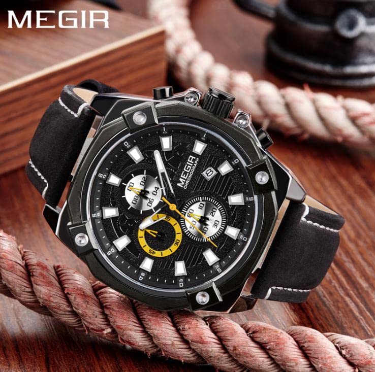 Megir - Megir wrist watch for men, leather, ml2054g-bk-1