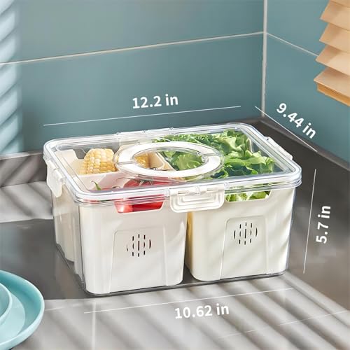 - MODULAR AND STACKABLE:This produce keeper container has a modular design that you can move around for superior kitchen organization; stack multiple fruit and vegetable storage containers on top of each other to create an interlocking storage system for your space.Whether you use it on its own or stacked with other kitchen storage containers, this bin is just the right size : 12.2inch x 9.44inch x 5.7inch. Note: Do not place in dishwasher and microwave.
