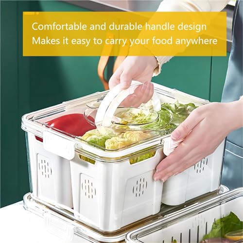 - REFRIGERATOR STORAGE BOX WITH 3 SEPARATE CONTAINERS:Filling these 3 compartment containers with the different treats. Ideal removable individual storage box for dry fruit, strawberry,grape,salad and meal prep, help to maximize your space and keep your refrigerator, freezer, pantry or countertops neatly organized. transparent, airtight, and leakproof, easy snap lid make this divided organizers for fridge more convenient to airtight, leakproof and keep food fresh.