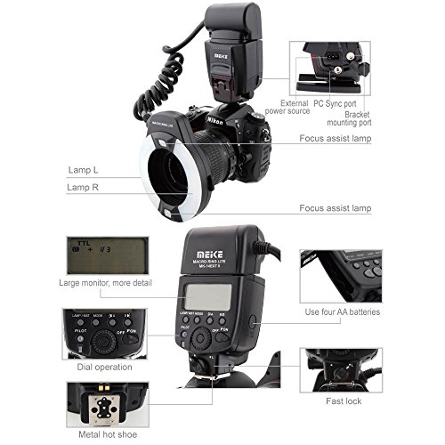 Meike - Meike iTTL TTL LED Macro Ring Flash Light for Nikon d3400 d5600 d5300 d3300 d3200 d3100 d5500 d5200 d5100 d7100 d750 d850 d7200 d500 d810 d7500 d5600 d5500 d7000 d3300 DSLR Camera with Hot Shoe Mount