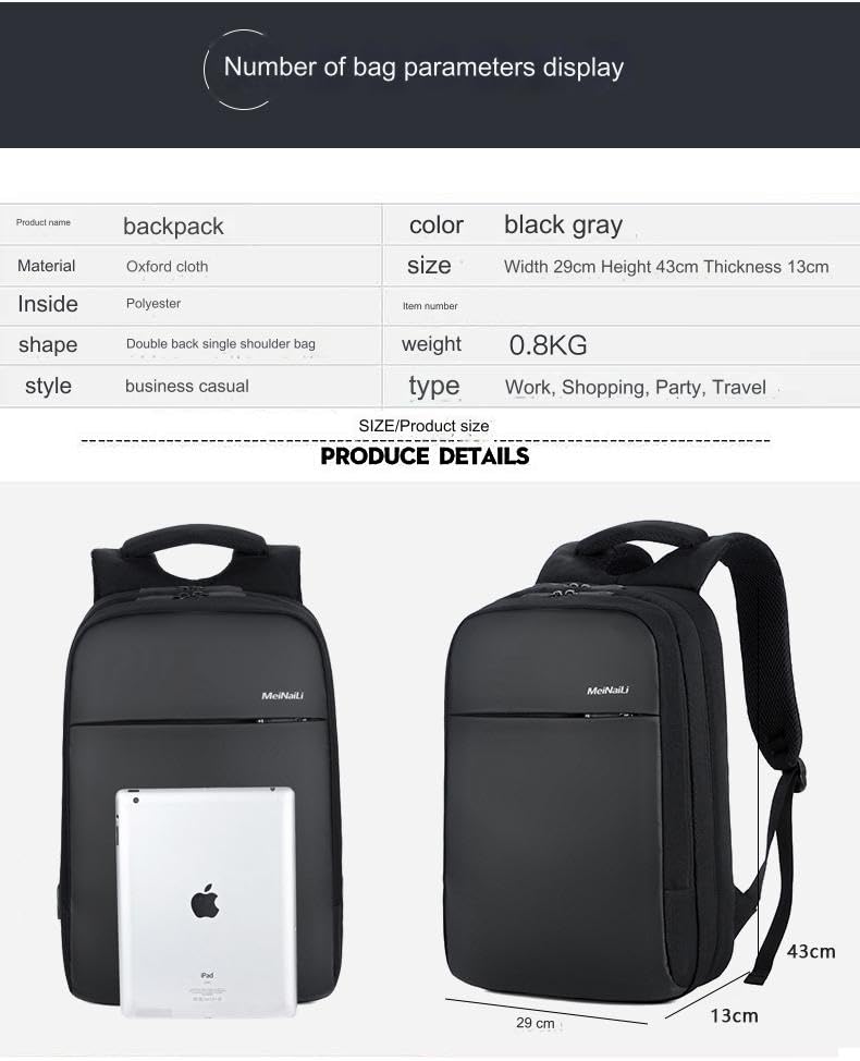 MEINAILI - MEINAILI Backpack for Men 15L Office Travel Laptop Bag with 15.6-inch Laptop Pocket Water-resistant Multi-pockets Large Capacity College Backpack