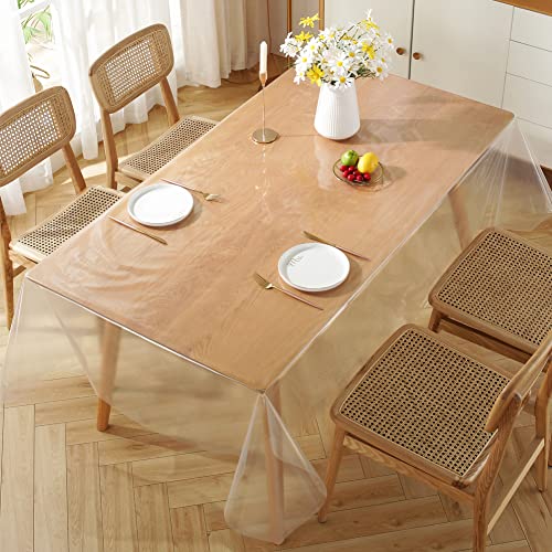 meioro - مفرش طاولة شفاف من البولي ايثيلين مقاوم للماء والزيت مفرش طاولة بلاستيكي مستطيل شفاف مناسب للاستخدام الداخلي والخارجي من ميورو (شفاف، 1.5 × 3 م)