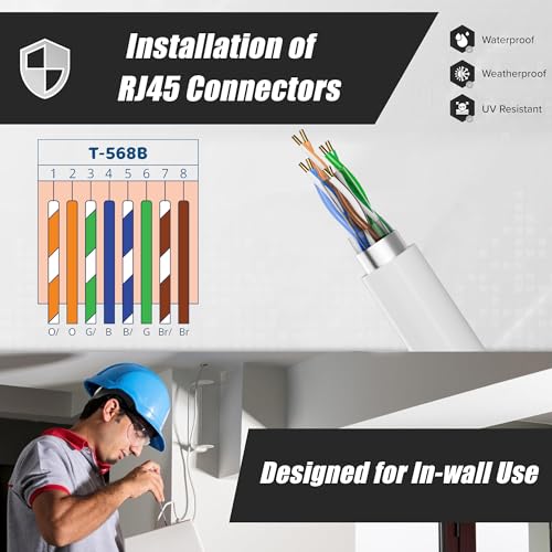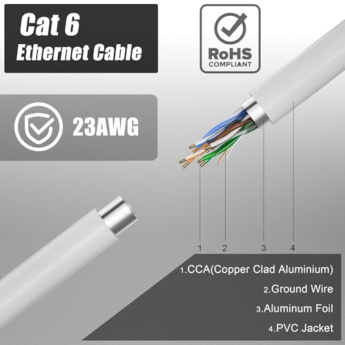 - Convenient Ethernet Cable: The outer case of the Cat 6 cables is made of high quality PVC and is waterproof, moisture-proof and durable. The conductor material CCA (copper coated aluminum) is lightweight and easy to wrap and route. The network cable is packed in reels with flexible cable lengths, clearly printed meters, and remaining lengths for easy recording and use.