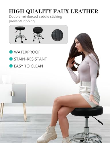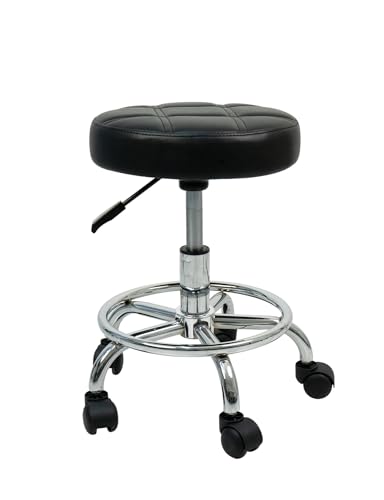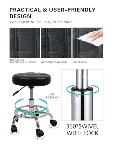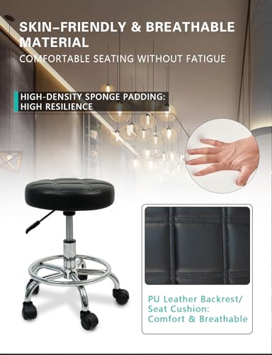 MEISHIDA - Height Adjustable Round Rolling Stool with Footrest Swivel Drafting Chiar Beauty Salon Stools with Wheels Small Office Chair (Black)