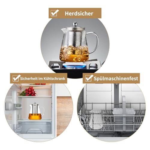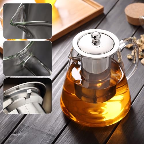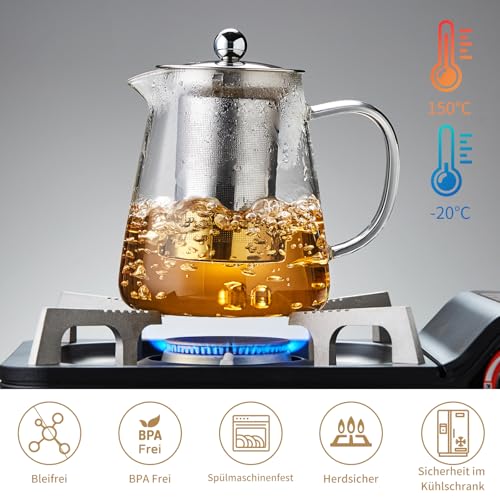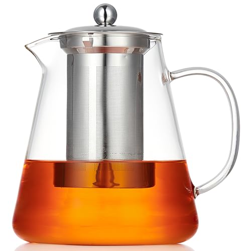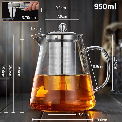 MEISINNI - ابريق شاي زجاجي مع مصفاة من ميسيني، ابريق من زجاج البوروسيليكات مع غطاء، 950 مل، مقاوم للحرارة وامن للاستخدام في الميكروويف، مثالي للشاي السائب
