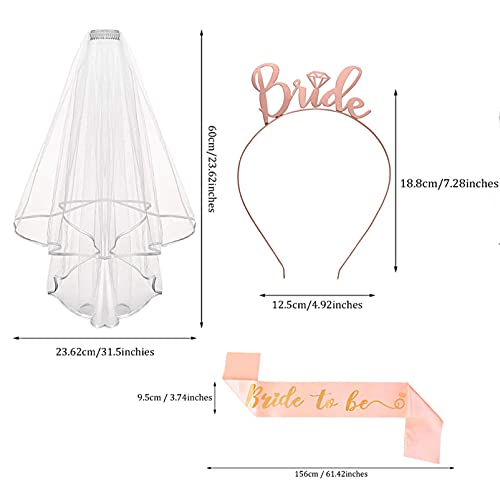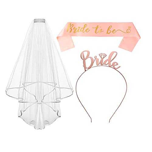 MEITREND - إكسسوارات حفلات الدجاجة ، وشاح العروس تو بي ، حجاب هدايا مع مشط تاج عقال ، مجموعة تزيين حفلات الدجاجة لحفلات الزفاف ، وحفلات الزفاف ، وألعاب الحفلات ، وديكورات حفلات الخطوبة ، 3 قطع من إكسسوارات Hen D