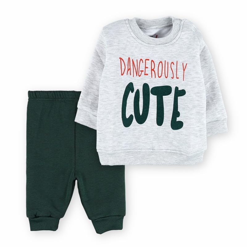 Generic - Melton Cotton Pajama with Unique Design: Gray & Olive green Size 0-3 months