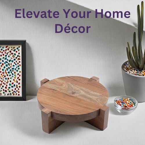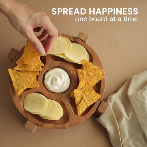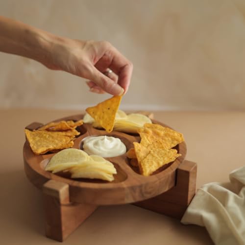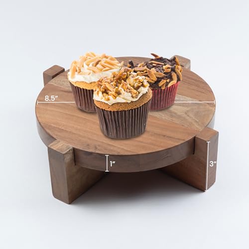 Melvvi - Melvvi Wooden Mini Cake Stand and Charcuterie Board | 2 in 1 Chip & Dip Platter & Cupcake Stand | Thanksgiving & Christmas Small Serving Trays for Kitchen and Home (Natural Brown)
