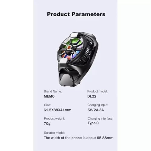 Generic - MEMO DL22 Mobile Phone Cooling Fan, Type-C Charging, RGB LED, Compatible with 65-88mm Width Phones, Black, yellow
