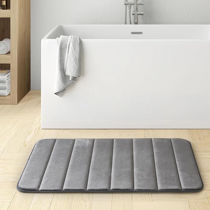 - SOFT AND COZY: Our bath mats are enhanced with memory foam for a soft and supportive foundation. The outer material is crafted from incredibly comfortable velvet fabric, delivering a truly generous experience that alleviates stress and fatigue in your feet and legs. You'll savor the luxurious, plush feel of these mats in your home.