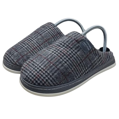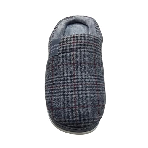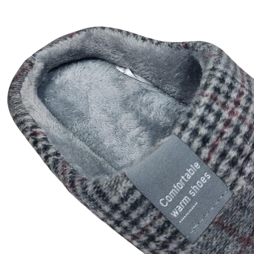 Generic - Memory Foam House Slippers, Men's Winter Indoor Footwear, Plaid Pattern, Grey 42/43 - لكلوك شتوي
