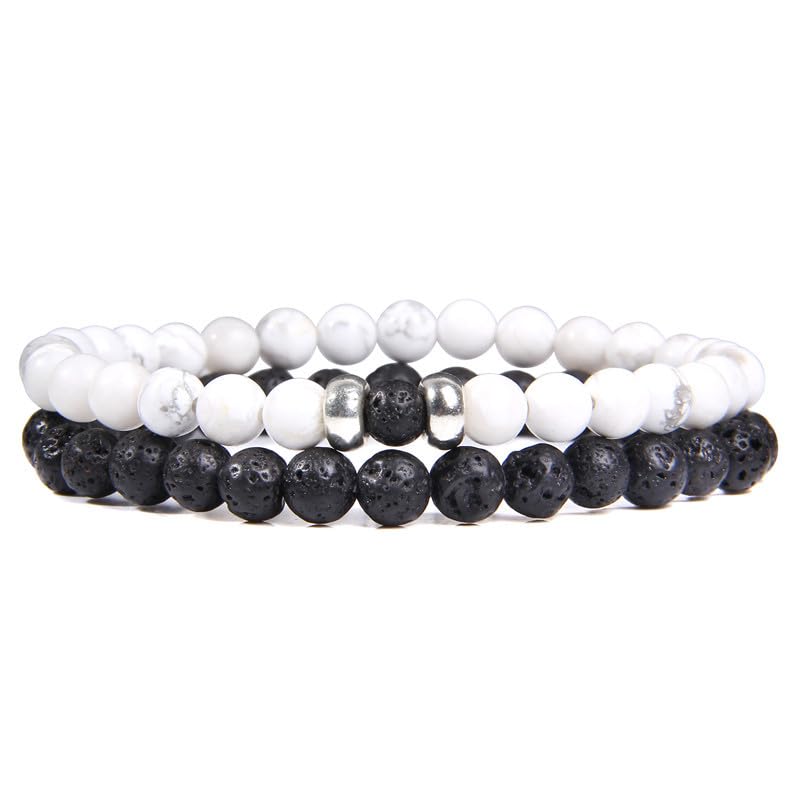 Lameybrt - سوار بحلقات للرجال مجموعة اساور خرز بريبي طبيعية قابلة للتمدد للجنسين كلاسيكية مع حلي للتعديل هدية للصديق والاولاد قابل بتصميم عين الحسد