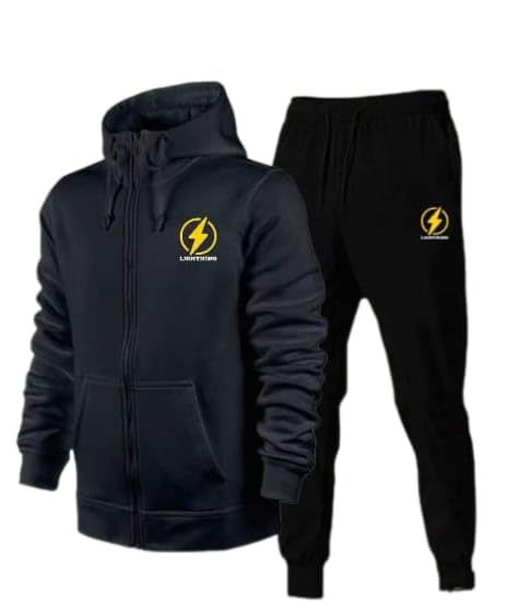 Generic - Men's 2 Piece Zip Hoodie and Pants Set, Black with Yellow Lightning Logo