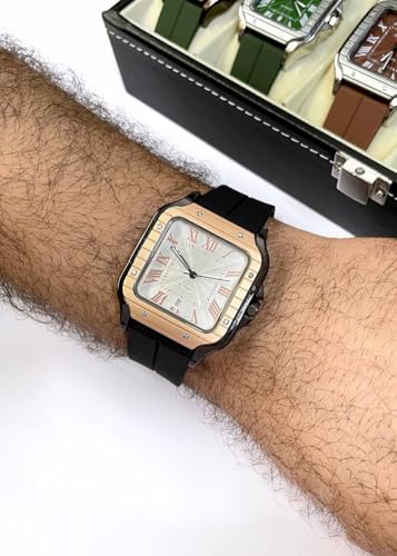 Generic - Men’s Analog Rubber Strap Watch – Sporty & Durable Design – Water-Resistant Timepiece for Everyday & Outdoor Use (Black Band x White Dial/Gold Frame)