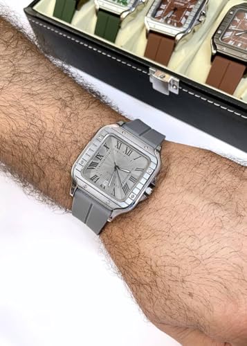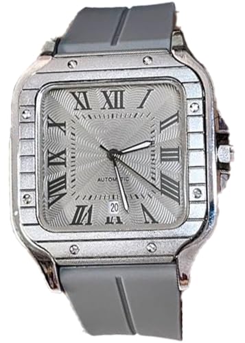 Generic - Men’s Analog Rubber Strap Watch – Sporty & Durable Design – Water-Resistant Timepiece for Everyday & Outdoor Use (Gray Band x White Dial/Silver Frame)