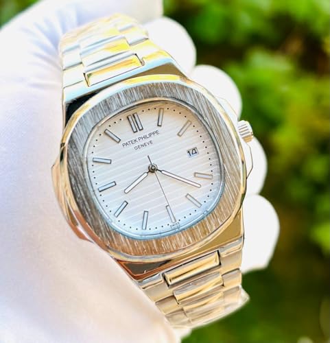 عام - Men's Analogue Quartz Watch with Stainless Steel Strap, Black, White Dial